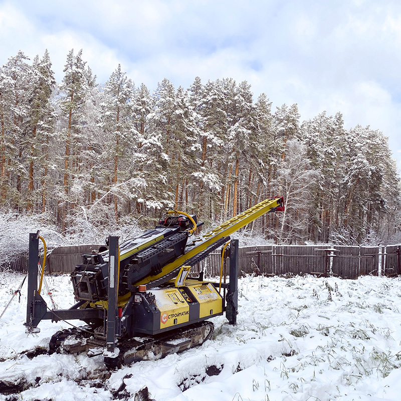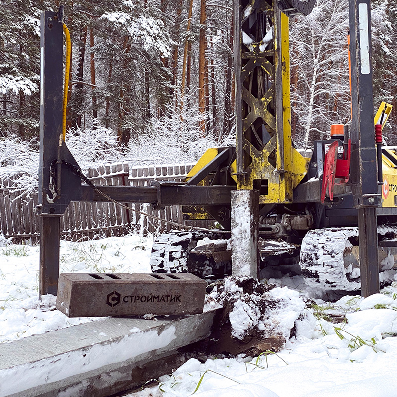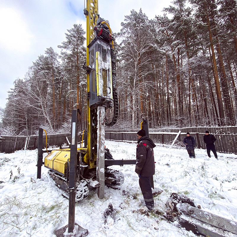 Что касается наших барнхаусов: они относятся к каркасным типам - это легкие дома, а значит, при нормальных условиях грунта и небольшом уклоне может подойти даже свайно-винтовой фундамент. Но его срок службы относительно невелик, к тому же при сильных ветрах дом может колебаться. Поэтому для экономии бюджета мы рекомендуем использовать бетонные забивные сваи. Учитывая рост цен на металл, винтовые сваи практически сравнялись в стоимости с бетонными, поэтому наши клиенты не тратят много времени на размышления. (На фотографии наши партнеры из “Стройматик” забивают сваи для нашего барнхауса)