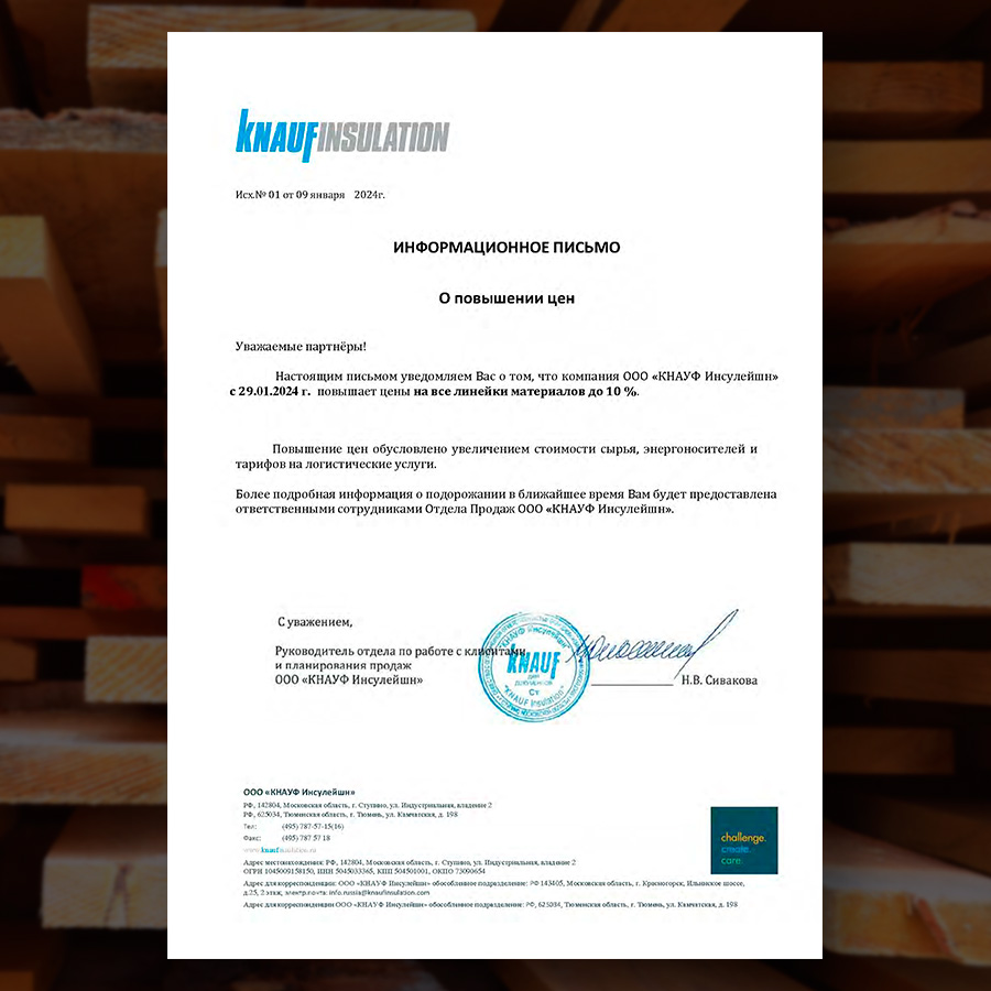 Наши поставщики уже начали отправлять нам информационные письма о повышении стоимости их материалов. А мы запланировали корректировку цен на наши дома на несколько этапов в течении всего 2024 года.